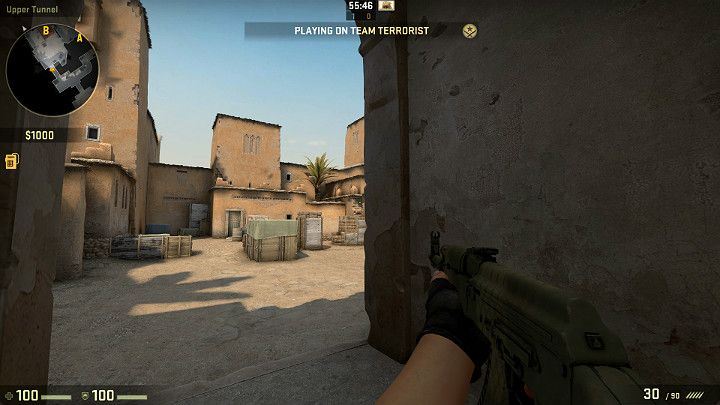 Let's move to bombsite B. You are safe behind the obstacles and you can see the tunnel through the narrow gap between the crates. If anyone comes from that direction, you will be the first one to know.