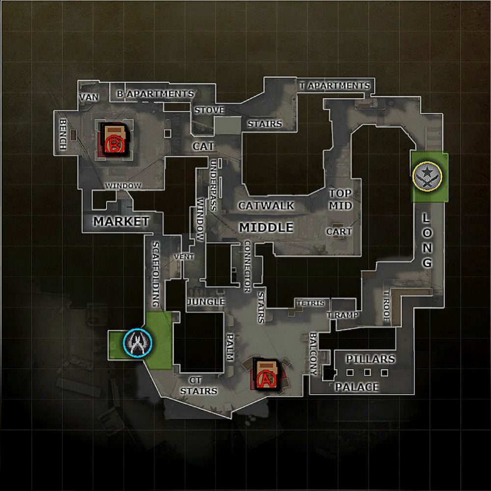 Mirage is a map where you have to control the center, which is often the arena of fierce fighting between both teams. On the map, there are many spots, where you can lurk for the enemy, which is why it is a good idea to spend some time on getting acquainted with the using smoke grenades, to pester the opponent as much as possible. This is especially important when you play in the terrorist squad and that's why it pays off to have a smoke grenade on you.