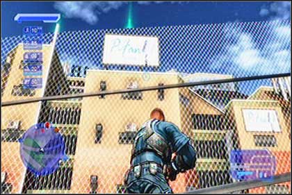 Jump the fence, climb on this building and you will be not far from Violetta Sanchez. If you play it well, you'll manage to surprise her. You just need to get from the orange building to the blue one and from there, guided by the radar, reach her hideout. The fastest way to eliminate Sanchez is to knock her over and finish off with few kicks.