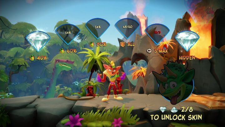 - Getting 60% of all Wumpa fruits available on the map;
