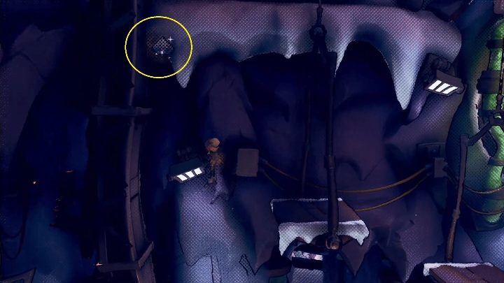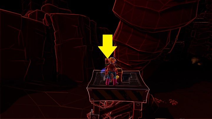 Poi will ride down the elevator. Move back a bit to get the hidden gem. There will be a save point and a mask before you, making the location easy to notice.