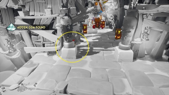 The hidden gem can be found high above your sight. You must bounce from the crate and jump into the air in such manner that you obtain the gem.