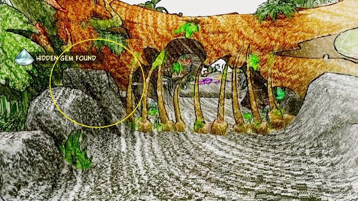 The hidden gem cam be found on the rocky hill. In order to reach it, you must simply jump from the stable ledge and fall to the lower floor.