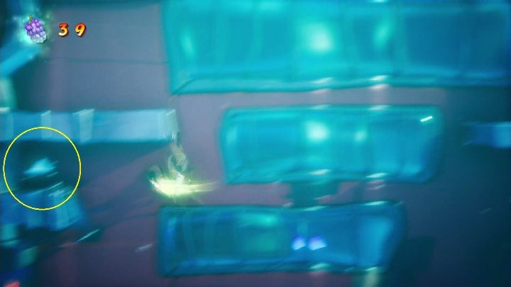 The hidden gem can be found in the beginning of the level, when you play as Crash. You must climb the column on the left.