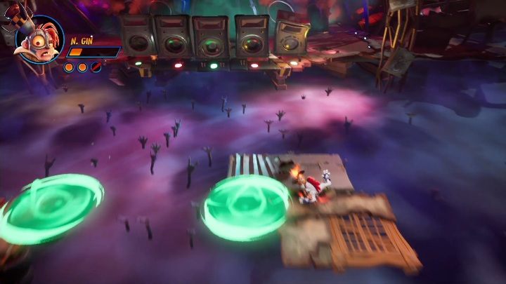 In Crash Bandicoot 4, you will fight several bosses. The first of them is on the Stage Dive map - you'll find N. Gin there. On this page you will find a detailed description of the boss battle.