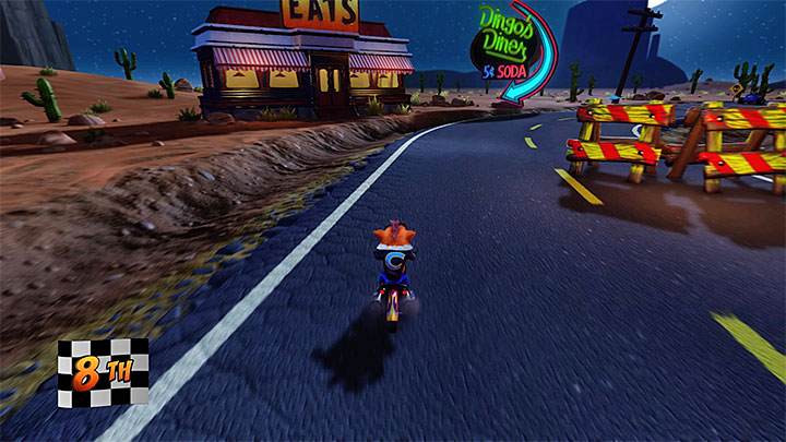 You can find the portal to Hot Coco in the fourteenth Road Crash mission, i.e. one of the oriental ones. Just to remind you, in Road Crash, you take part in a motorcycle race. After the race starts, ignore the opponents and ride at a moderate speed. Head down the main road until you pass by Dingo's Diner restaurant shown in screenshot 1.