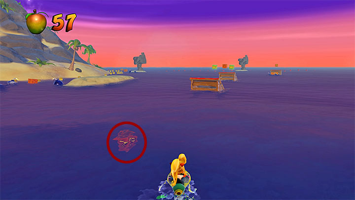 - The other problematic crate has been perfectly hidden. It has been shown in screenshot 2 and it is submerged. You have to jump on a nearby ramp and, in mid-air, lean the analog stick forward, for a moment. Thanks to this, the nose of the jet ski will go under water and let you hit the crate.