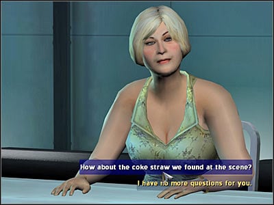 Once you've arrived at the interrogation room, you'll witness a longer conversation. You must wait patiently for this conversation to end. Ask Jill a few questions: