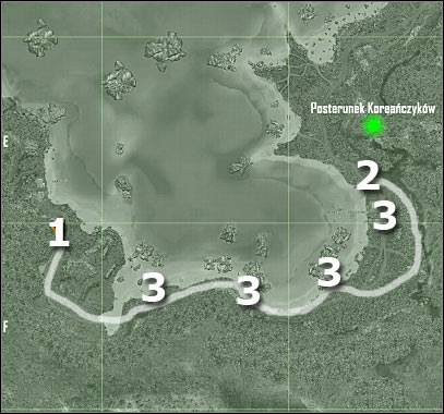 Head on to your left, because enemy soldiers are guarding a nearby beach (3 on the map). I guess I won't have to remind you to use camouflage, because that's the only way to get close enough to them. Try eliminating them with single shots to the head and from a cover, so none of them uses a flare to warn other enemy troops of your presence.