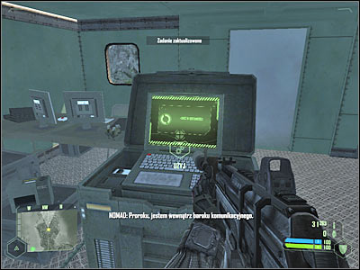 You won't have to use your strategical map here, because your objective can be found inside this building. You will have to approach one of the computers. Once this is done, press the action key in order to upload data (screen). It's going to take a while, so be patient. Exit the building and go back to your previous assignment.