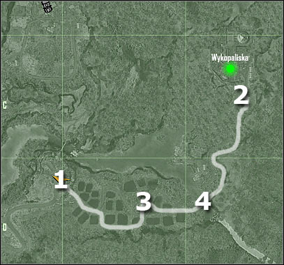 Now you will have to deal with a very challenging segment of your approach. You will be forced to get closer to the main road. This area is being patrolled by at least two groups of enemy soldiers. I'd strongly recommend avoiding them. If you decide to fight them, you must use trees for cover. Shotgun is the best weapon to take them down.