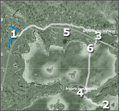 Obviously destroying all three AA guns is going to be your main task. We'll start with two units. As for the third gun, you'll get to it later during the course of the game. Your first area of interest will be the northern gun (3 on the map). As a result, you will have to leave this hill by sliding down to the lower level (screen). It shouldn't be too difficult and you won't have to use camouflage here, because you are accompanied by allied soldiers.