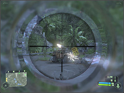 Start moving north-east. You will probably encounter an enemy humvee in just a few seconds. Activate your cloaking device and take out the gunner as soon as possible. Once he's gone, deal with the remaining enemy units. Like I've said before, you will be able to rely on a small group of allied soldiers, so you won't have to use camouflage constantly. Try securing this entire area before moving on towards the first AA gun.