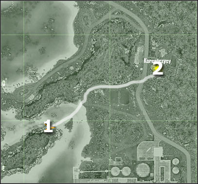 I'd strongly recommend fulfilling this objective WITHOUT raising any alarms. It's very important, because otherwise you would have to take out at least one enemy helicopter and reinforcements would arrive near your destination. Thankfully, you won't have any problems reaching your target. Start off by moving north-west. You'll find yourself near a larger section of the beach.
