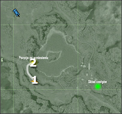 This is going to be a very simple mission objective. You won't have to use your tank here, because your target is located nearby. You will have to get on top of a larger hill (screen). Use my map if you're having some difficulties finding it. Head on to a designated area of the hill.