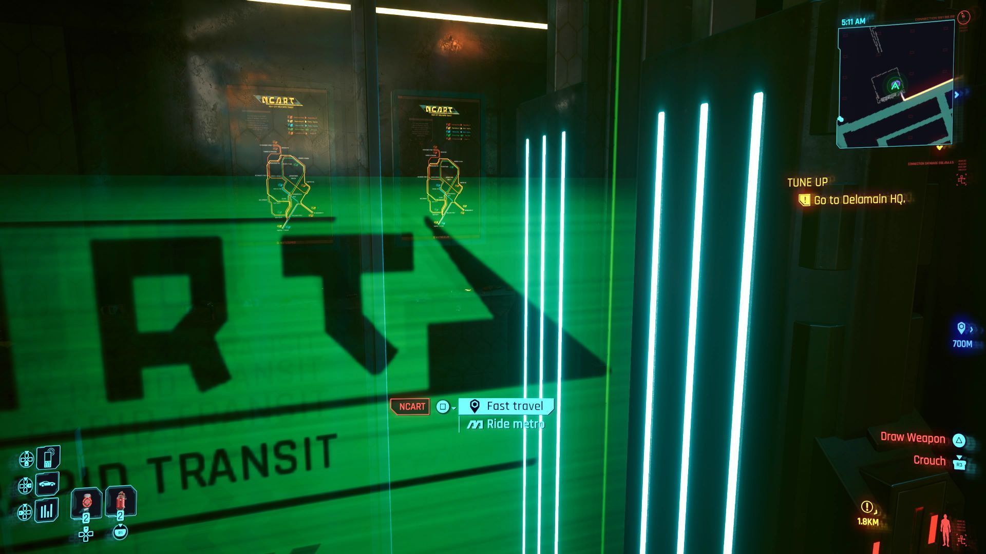 - Fast travel - It is instant and is the better option. You can choose any dataterm or other subway station on the Night City map.