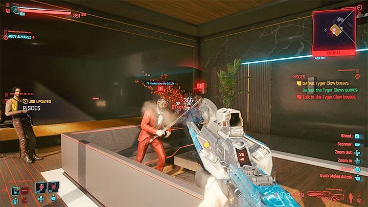 In both cases, it will start the fight with the Tiger Claws - those from the office and those in the other rooms of the apartment (if you have not eliminated them before). As the enemies from the office are using mainly melee attacks, it is a good idea to shoot them from behind a long couch, making it difficult for them to get closer to V.