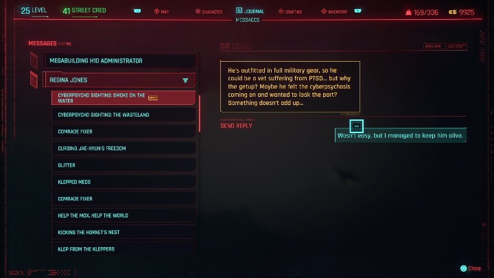 And the last simple thing to do is to click on the message that V will send to Regina, and that will complete the job.
