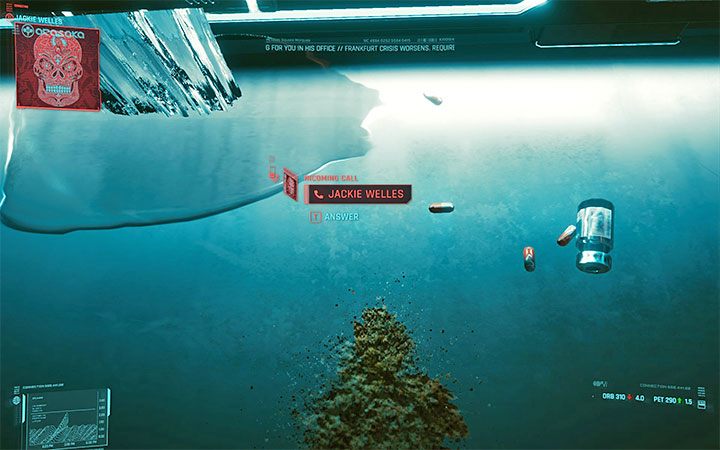 You will receive information about a call from Jackie Welles. Press the answer button to pick up the phone.