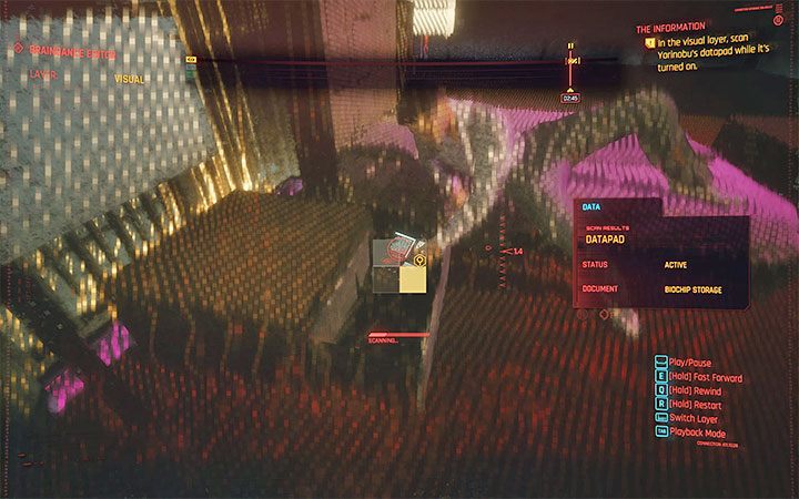 The datapad may be related to some serious bugs that can prevent you from completing the braindance. They can cause the datapad not to appear or it will be unavailable for scanning. The only solution is to load the automatic save from the start of braindance and completing the scene from the beginning.
