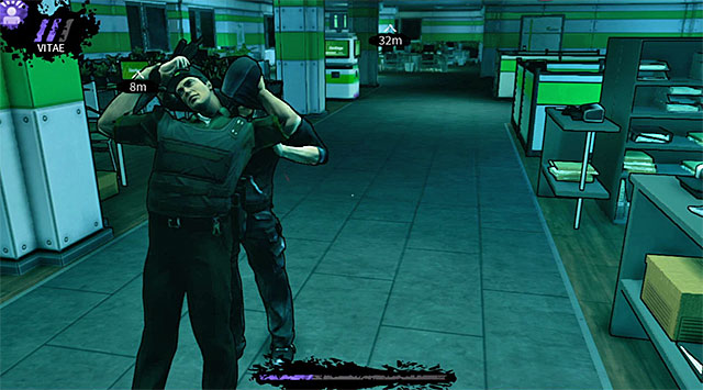 There are two guards in the administration section of the building. The guards will be standing close to each other when you arrive here for the first time and if you don't want to kill them you should quickly move to your right (use Shadow Leap if needed). If on the other hand you plan on killing them then you should get closer to them and wait for them to end their conversation (it'll take some time - be patient), because that's when they'll go their separate ways. This is your moment to attack. Don't forget to hide the first body so that the second guard doesn't notice it prematurely.