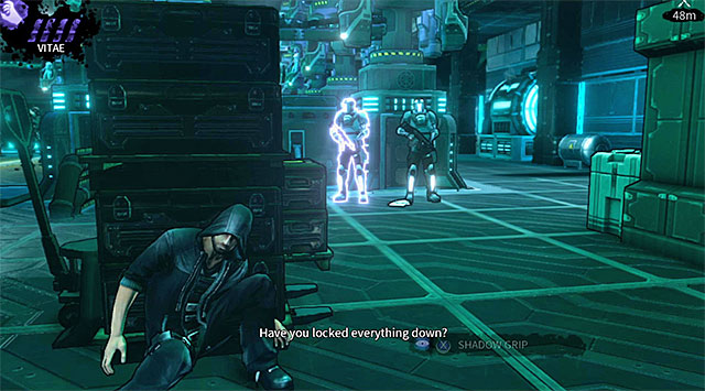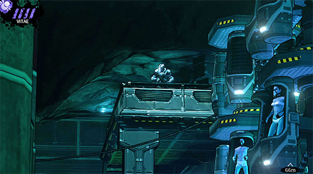 You'll soon enter a large area filled with cryo chambers. Once again you will have to watch out for vampire hunters, especially since one of them will be wearing a heavy armor and using a minigun. Thankfully there also some good news. First of all, there are only motion sensors in this hall so you won't have to be on a look out for other countermeasures. Second of all, you will have a chance to easily avoid all of the enemies and reach the exit in under a minute.