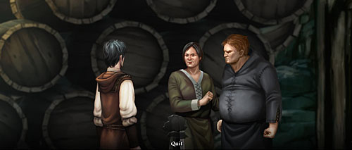 Notice Olgierd and Ulfried standing next to the pile of barrels. Talk to Olgierd using all dialog options. Once you finish the conversation go through the nearby door and Geron will find himself upstairs where he eavesdrops important conversation between Olgierd and Ulfried. Go downstairs and head to the market.