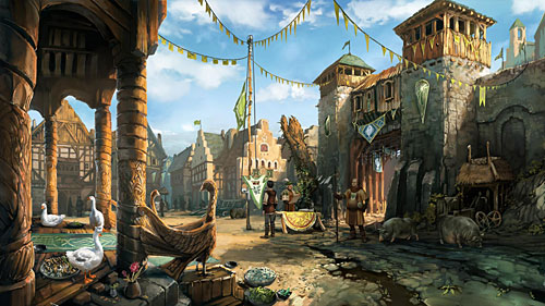 Go to the castle gate. There is Chamberlain Newcastle standing next to it. Talk to him, first of all asking about an advice on hidden fourth oak leaf. You'll hear a riddle, which Geron has to solve. To do this, you should go to the market.