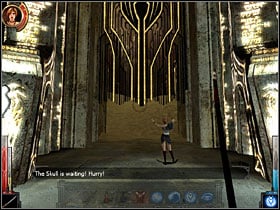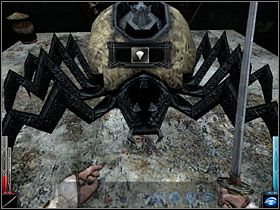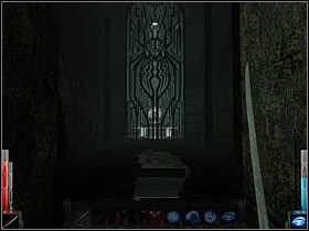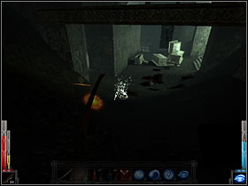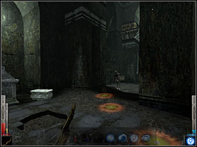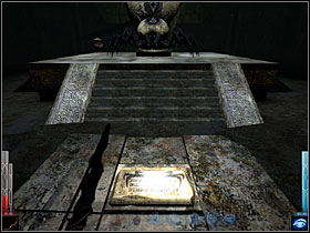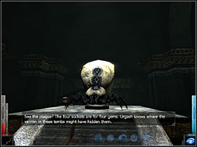 The inscription on the plate will tell you what to do. Take items. Put Moonsilk on the slot in spider's head and the passage will open. Go there and set up Fire Traps. It has been a good idea, because the Undead will arrive! Set up another Fire Traps on the right side of entree. The Undeads will come. Use Flame Arrow additionally. In the first room you will find Superior Naga Silksword (on the tomb) and Stone Skin Potion (inside the stone box). In the second room destroy a clay vase and take an Antidote. Go on.