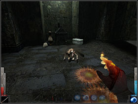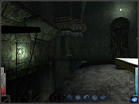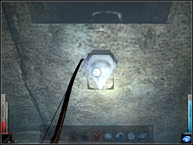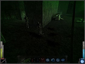 Go right and then downstairs. Use Dark Vision, you will see a gate and a hole in the floor before that gate. Look out of the hole. The Undeads! Use Long Bow and kill them.