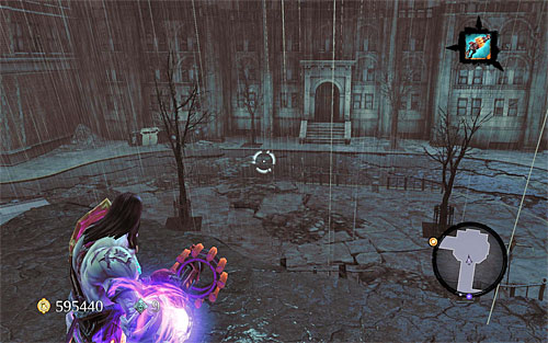 After you leave the building, turn right and go straight ahead. Enter the neighbouring building and find yet another Book of the Dead Page (side quest [The Book of the Dead]). That's not the end yet. Turn South-East and start firing at the fifth already trapped hellguard. (side quest [Light of the Fallen]).