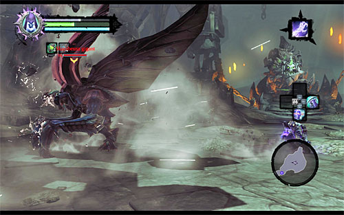You'll be facing a mini-boss called a Scarab Hulk. Its basic (though not the only one) attack is a jump that makes shock waves on contact with the ground, and when that happens make sure you maintain a safe distance. Apart from that, watch out for the upper legs, though they're much easier to dodge.
