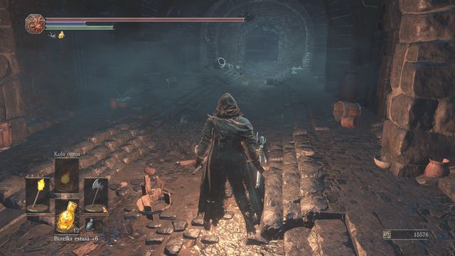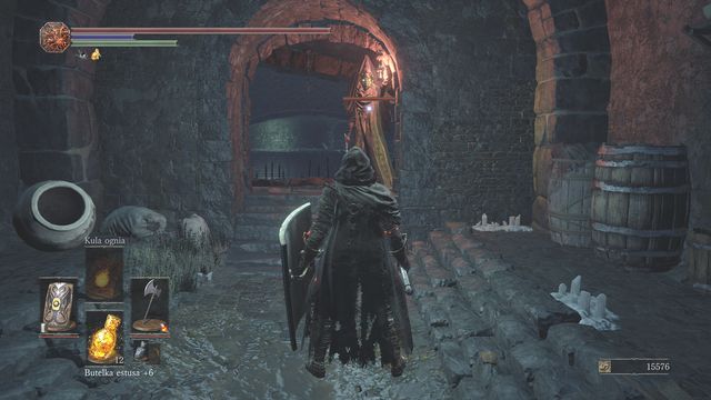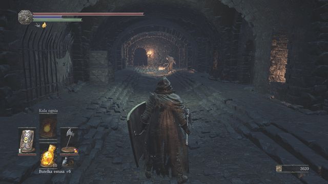 Watch out for the new opponent which is very dangerous. In addition to the regular attack - burning the iron to the ground - that deals large damage and slows you down, the opponent can raise his lamp. If he does it, you have no choice, you must kill him very quickly since escape won't save you from health bar reduction (you would need to get very far away or hide behind a wall so that the enemy won't leech you and won't see you). Your health will drop until the enemy drops his lamp or dies. In addition to that, you must wait until everything gets back to and then heal with the Estus Flask. Because of that, kill every opponent of this type as fast as possible and before going further wait for your health to be regained.