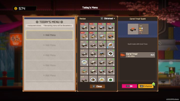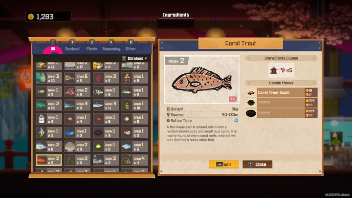 - Coral Trout is used as an ingredient in 3 different dishes. The first of them is Coral Trout Sushi, and the next ones are unlocked as you progress through the game.