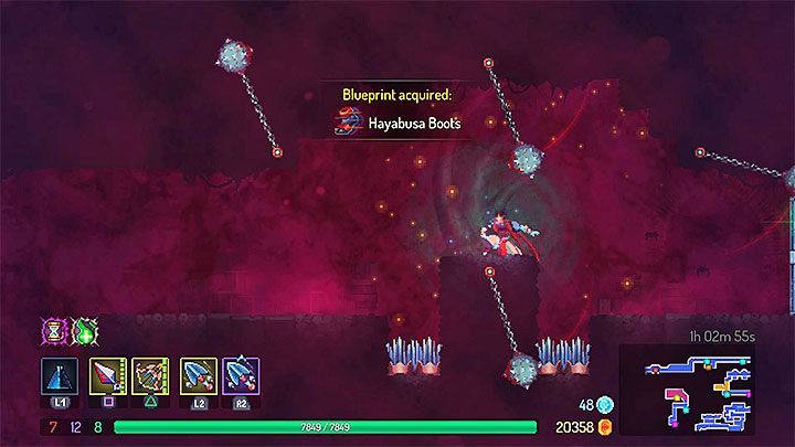 The next 2 Crypt Keys can be found by defeating the elite enemies; battling them is fully optional. In the example from picture 1 the opponents are two Dark Trackers. You can find another closed door and by using up additional 2 keys you can unlock the access to the secret room with the Hayabusa Boots blueprint (picture 2).