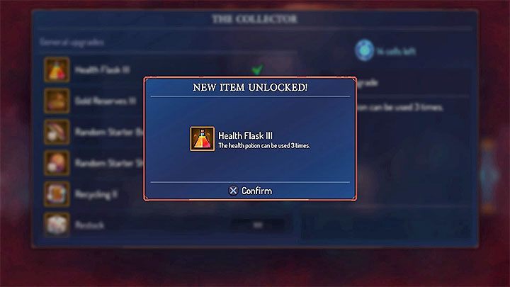 Health Flask is one of the most important elements of your equipment in Dead Cells. This item is your main source of regenerating health points (not necessarily all) and it can be used anywhere. Health Flask I can be unlocked at the beginning of the game. However, you shouldn't stop at this level. It is very important to get new Health Flask levels. Sadly, prices for new levels go up rapidly. However, you still should get new upgrades as soon as the game unlocks them for you.