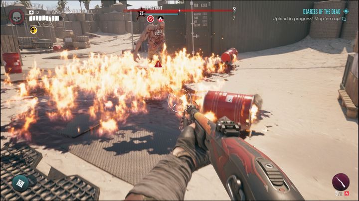 If you see a large group of zombies that you need to eliminate, instead of making do with standard means (which will see you spend a lot of resources and consumables), use the opportunities provided by the environment. No matter the location you're in, there are many opportunities around - water, fuel, and acid canisters, exploding barrels, puddles. All this can be used to quickly dispose of the threat.