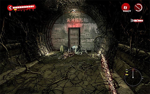 Now you can return to where you've eliminated a bigger group of zombies and choose a corridor suggested by the game. Beware of electric charges on your way. Eliminate two more Walkers and open door to the biggest and very non-linear area of this location.