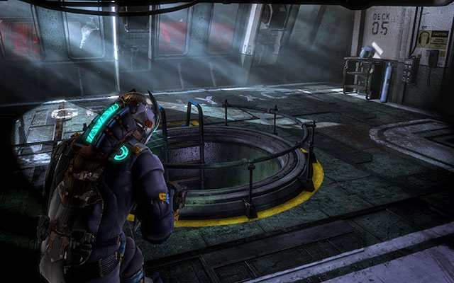 After getting down you'll be warmly welcomed by Necromorph, but you should have no problems with him. Search all wall lockers to get some useful supplies.