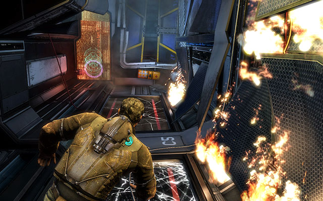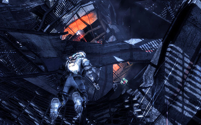 After the cutscene you'll have to reach a suit. The way there is not easy - at the beginning the gravity starts to go crazy and you'll have to go over windows (do not worry, they won't break).
