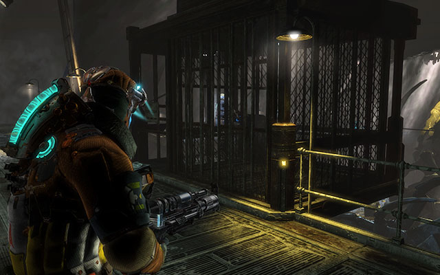 Your task now is to find the synapses that you need to examine. While aiming the probe gun, you should be hearing a beeping sound - the higher the frequency of the beeps, the closer to your target you are. The first one of the synapses can be found to the right of the entrance to the cage. As soon as you take a shot at it, you will be attacked by a horde of Feeders. The best strategy is to return to the cage, where you can be sure that you won't be taken from behind.