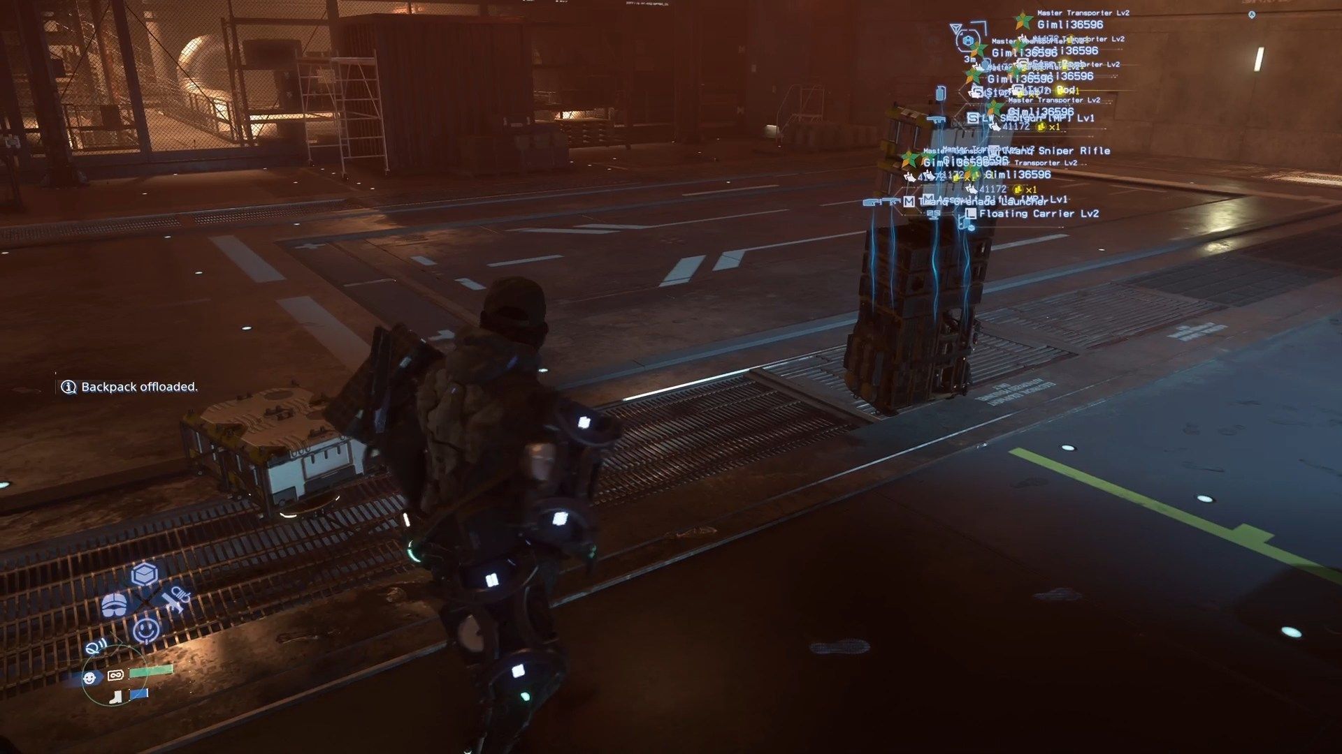 When picking up cargo, Sam puts it in his backpack. The backpack can hold several packages. The ones loaded into the backpack are marked with an additional symbol on the cargo screen. They are protected from the effects of timefall - the containers will not be damaged by rain. Once the backpack is full, Sam will start putting packages on top of the backpack. The higher the stack of packages, the more often he will lose his balance.
