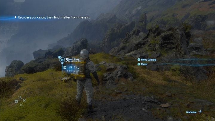 The first cut-scene in the game ends when you lose the motorcycle. This is the moment where you will learn the first mechanics of Death Stranding. Your task is to pick up the parcel and located the destination.