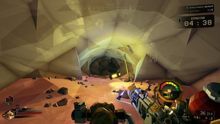 After collecting a certain amount of main raw material such as Morkite, the player can immediately complete the mission and proceed to the evacuation process, or postpone this decision and try to complete a side task to gain even more credits.