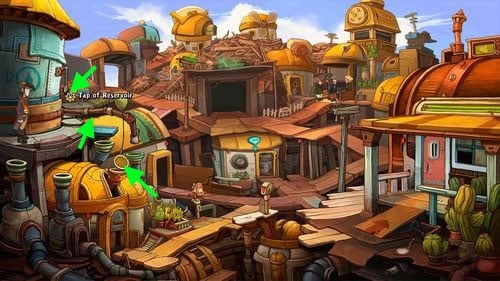 Return to the living room and then go outside. Head to the water reservoir on the left. Kick the Pipe which will circle around the tank and stop over the Wenzel's house chimney. Pull the Tap of Reservoir and watch the disaster.