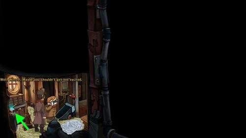 Go inside Wenzel's house. Wenzel is in the basement - Rufus will go there automatically. Unfortunately, instead of your triumph, you'll have to face another failure. There is a wheel of pure water in Wenzel's basement, which means that he will be rich now! After a while Wenzel will go to mayor to tell him about the discovery. Take the Divining Rod on the left and look at well trying to get some water, but Rufus refuses to do this.
