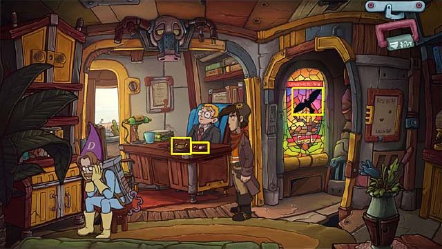 Try to remove the bird sticker from the stained glass window. Take shards of stained glass. Combine them with the glue and the glasses to get 4D glasses.