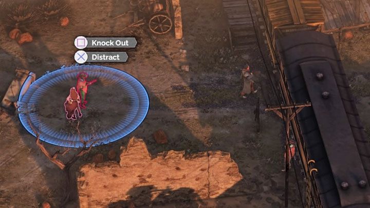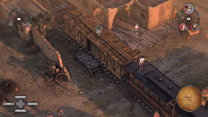 The hardest thing is to get safely close to the railway car which serves as an exfiltration point (M14,16), as its vicinity is guarded by a moving Long Coat. The easiest way to pull the bandit away from the roof of the nearest car is to whistle.