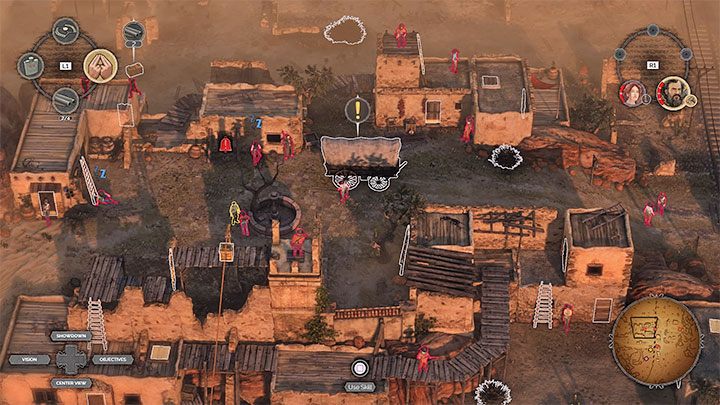 This is the best choice when completing the mission for the first time, but playing on a high level of difficulty means having to deal with uncomfortably positioned opponents. This becomes especially troublesome in locations with the wagon and cattle - drawing away individual enemies is much more difficult, and you have to deal with 3-man enemy patrols (sawed-off shotgun is great against them) Make sure to get a disguise for Kate, as you can use it to distract many enemies standing in locations that are inaccessible to Hector. Fortunately, this challenge doesn't have a time limit, and you can save your progress freely.