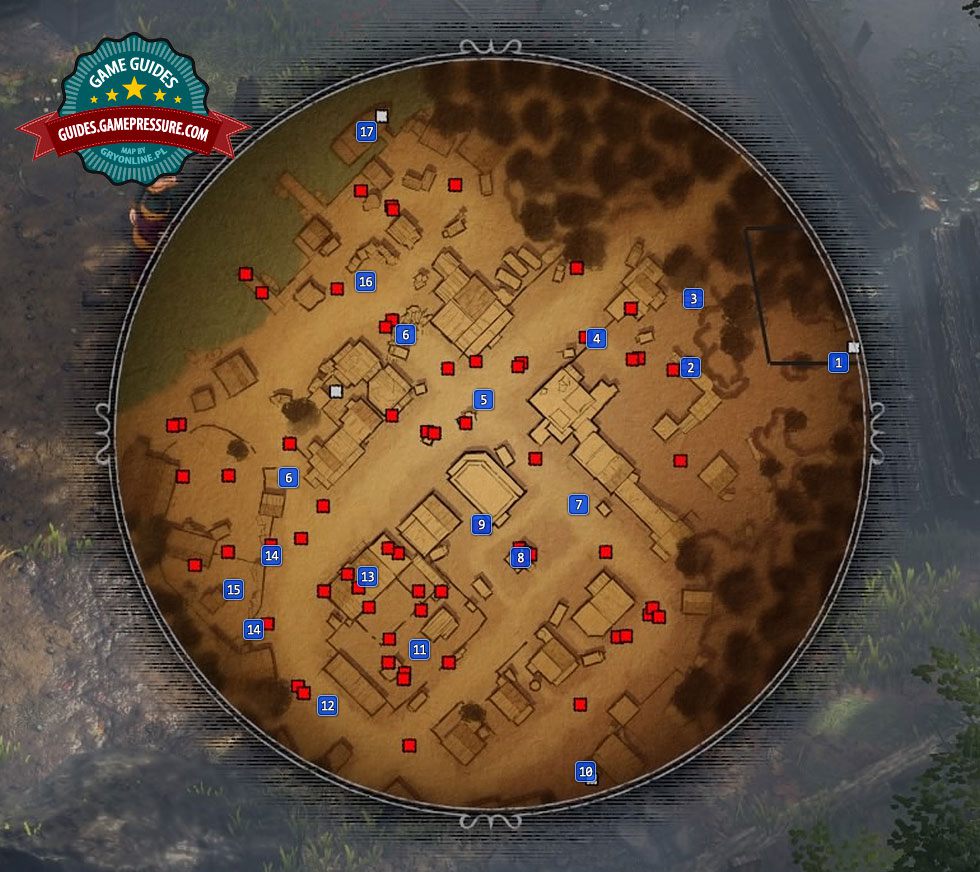 - The red dots symbolize the opponents appearing in the town and in the docks. Avoid these characters at all costs.